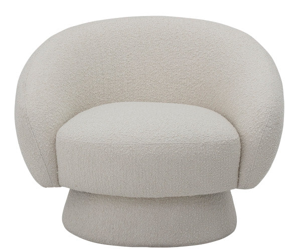Bloomingville Ted loungestol. Læn dig tilbage og nyd komforten i de bløde runde former og udtrykket af det smukke lyse Bouclé stof. Ted er en skøn loungestol fra Bloomingville der på fineste vis rammer tidens trends. Ted er del af Bloomingville’s stolte 20 års jubilæumskollektion. Bloomingville Ted loungestol – hvid Fuldt betrukket med boucle stof