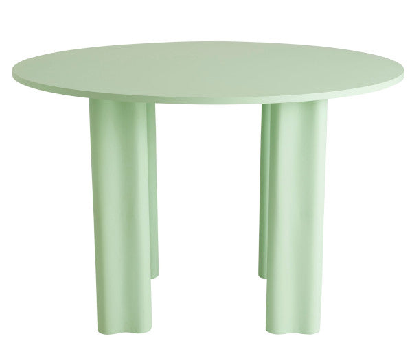 Nordal Envo spisebord i en lys, grøn farve, med diameter 120 cm. Med sin flotte farve og organiske form er Envo spisebord et moderne og modigt valg, der vil indgå som et skulpturelt, iøjefaldende element i ethvert hjem. Mødet mellem materiale og form skaber et elegant udtryk, og de bløde former kombineret med rene linjer giver kant og tilføjer attitude til indretningen. Med harmonien mellem design og funktionalitet er Envo spisebord et must-have i en vovet og stilet bolig. Nordal Envo spisebord – 120 – grøn Materiale: MDFMål: 120 cm x 76 cm