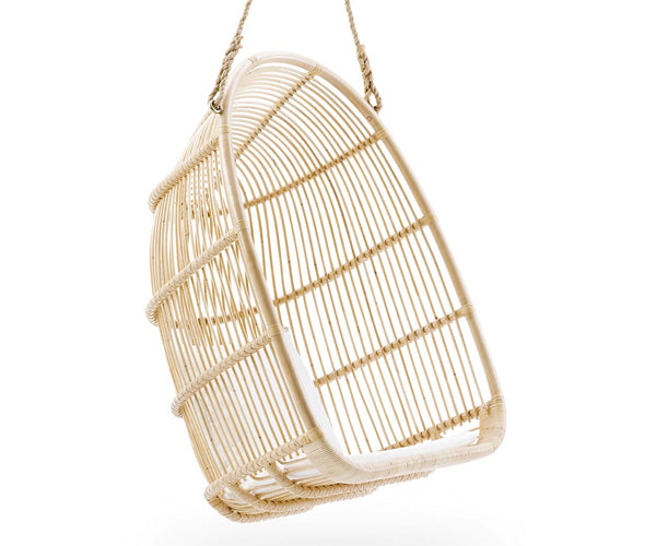 Sika Design Renoir Hængestol i natur rattan har i mere end 50 år været en fast del af Originals kollektion. Den organiske æggeform udført i robust og slidstærkt naturmateriale rattan er indbegrebet af kolonistilens etniske islæt. Sika Design Renoir Hængestol – Natural Mulighed for tilkøb af pude til ryg og/eller sædeLeveres i flere farver Fra toppen af rebet til top stol er der 110 cm og 121 cm ned til fikseringspunkterne på stolen. Rebet medfølger. Krog er ikke inkluderet, da dette afhænger af lofttype.